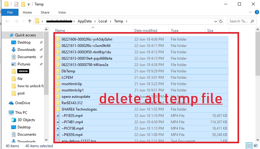 Step2– Delete all the files and folders showing in the temp folder as shown below image.