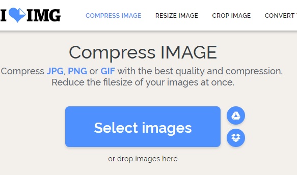 Iloveimg is an all in one online image utility to compress, resize, and converter tools. Looking to compress your JPG, PNG or GIF photos in single or bulk size then you can try these tools. Upload, or drag your saved photos and compress without disturbing any pixel in a quick way. It also supports Google drive and dropbox to directly upload the image from your cloud storage and compress it faster.