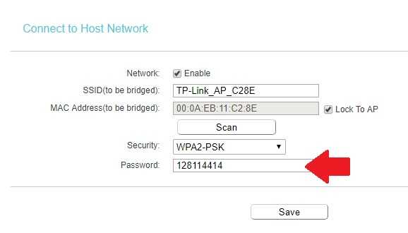 Password: type password for repeater SSID.