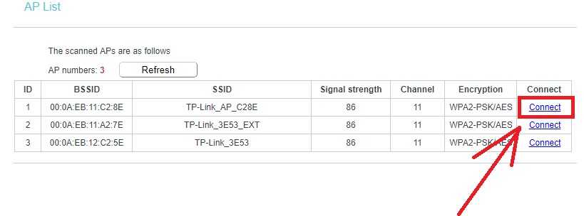 Find your WiFi name from the Scan list and click the connect button to join.