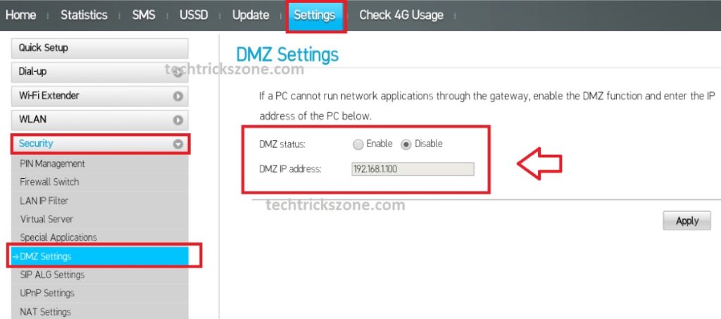 DMZ settings use to create a secure tunnel to access any private network device publicly throw routers. So if you are looking to access any Device, CCTV, NVR, Server and other network device publicly you can use DMZ settings for the remote area where you can use the 4G network. see how to use DMZ configuration in Airtel hotspot router.