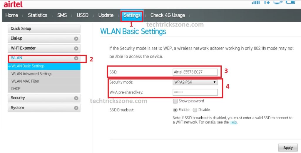 Airtel 4G router preconfigured with default Airtel said and the Default password for WiFi connection. Default settings are always highly recommended to change to be safe from hackers. Any WiFi router default settings easily can get from the internet so change always default settings. see step to step how to change 4G router default Wi-Fi name and Password.