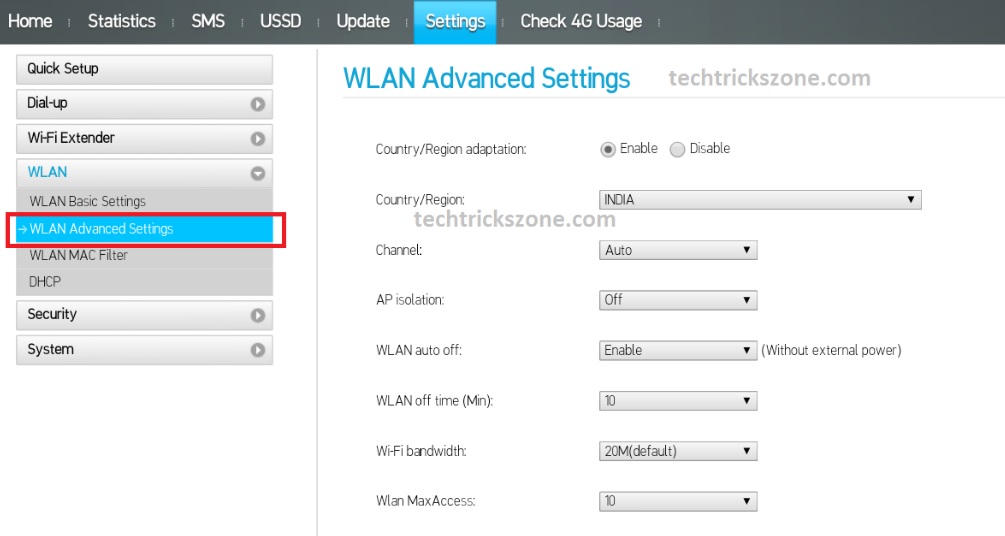 WLAN Advance settings are always important to avoid Wi-Fi speed issues due to wrong channel selection and wrong settings. See how to configure Hotspot 4G Wi-Fi router Advance settings.