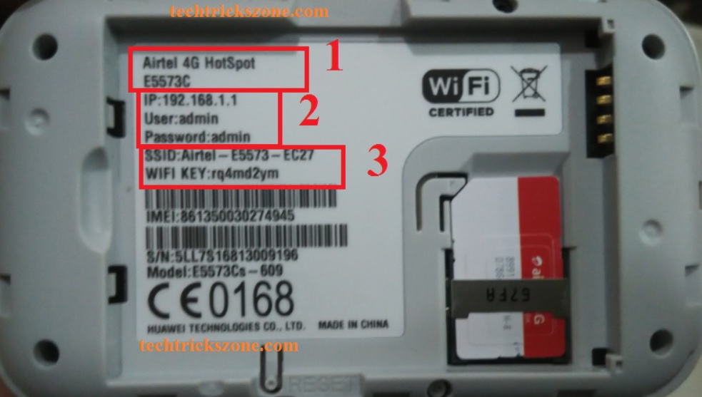 To know how to use airtel 4g hotspot with own wifi name and password first step is Open Back cover of your 4G router. Remove the battery and see the sticker with Model No. Default IP address and the default login username and password for Airtel 4G router.