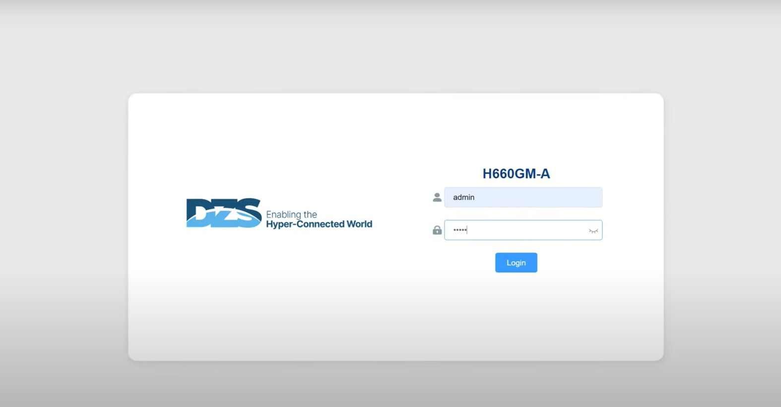 Default Login IP address DZS H660-GM-A/DZS H680-GM-A= 192.168.1.1