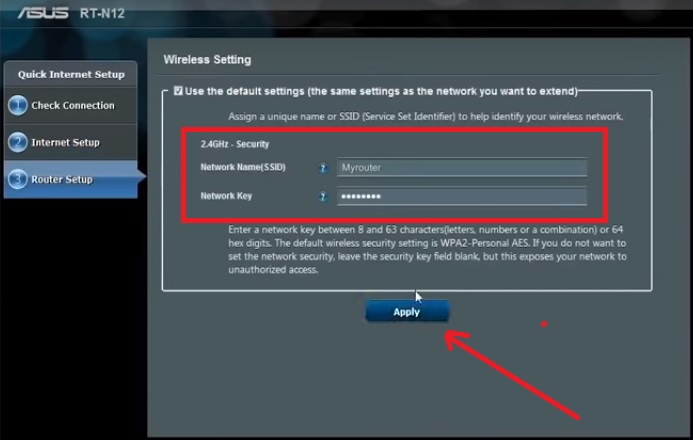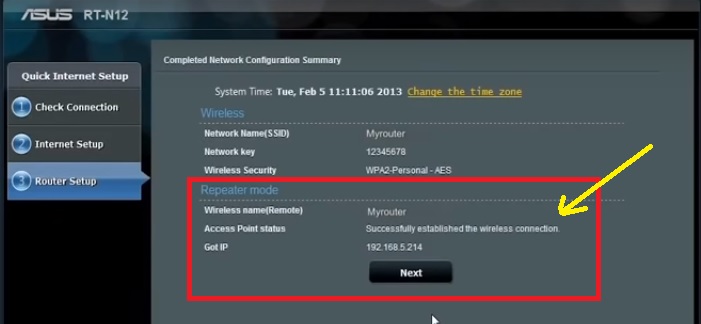 Asus RT-N12 Wireless router set Repeater SSID and Password