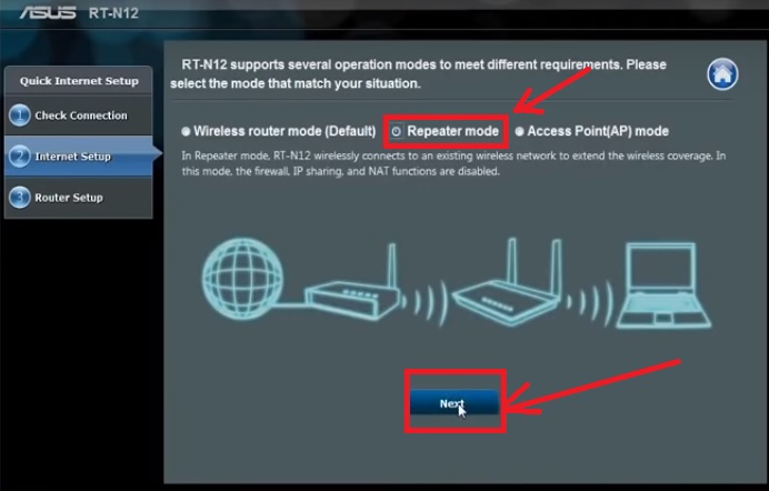 Asus RT-N12 WiFi router Setup in Repeater Mode Configuration