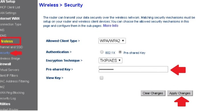 Go to Wireless- Security