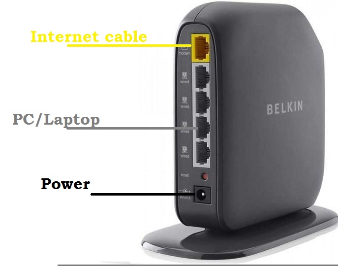 - Belkin router having LAN port for local network connection and WAN port for internet cable connection.