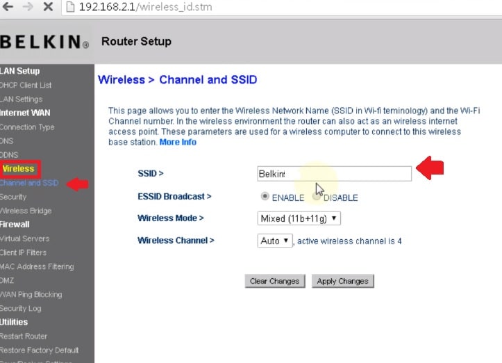 Change Belkin WiFi SSID network name