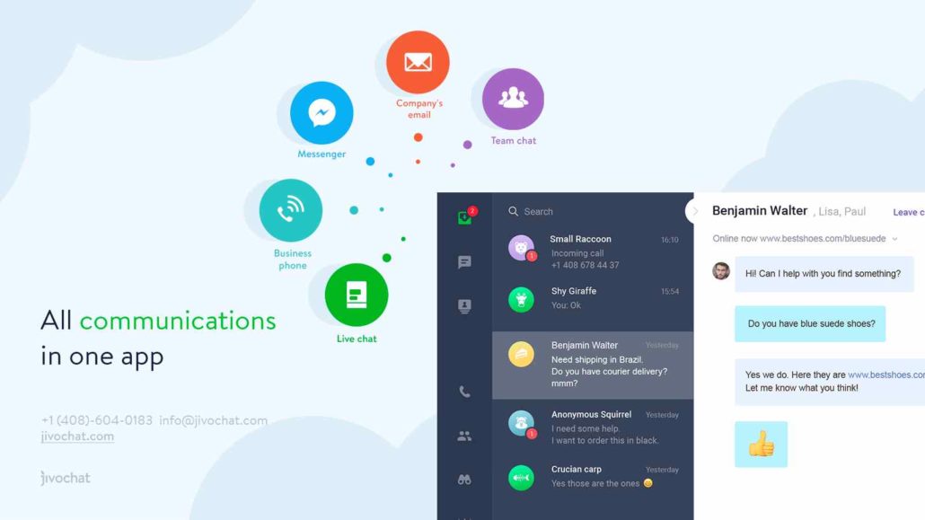 JivoChat live chat solution for those looking sales, support and blogger who want to reduce bounce rates. It helps you to grow trust between a new client and convert into sales leads. For a blogger, it is a tested way to engage your visitor using chat and increase the site spend time and reduce bounce rate.