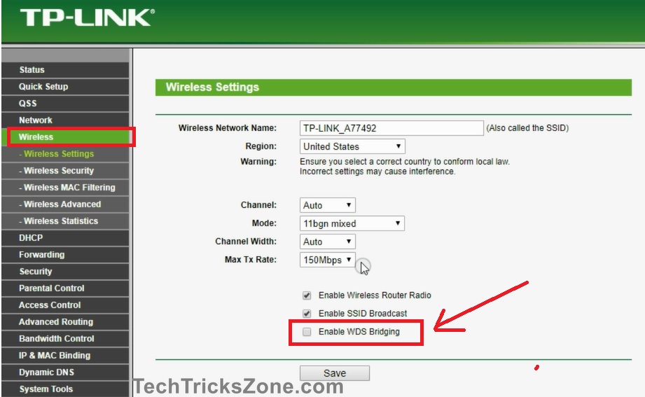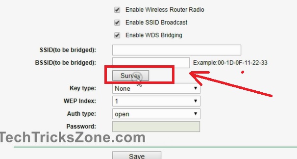 In this step, we will enable the WDS bridge mode to connect the ADSL router wirelessly to use for the Wi-Fi signal boost.