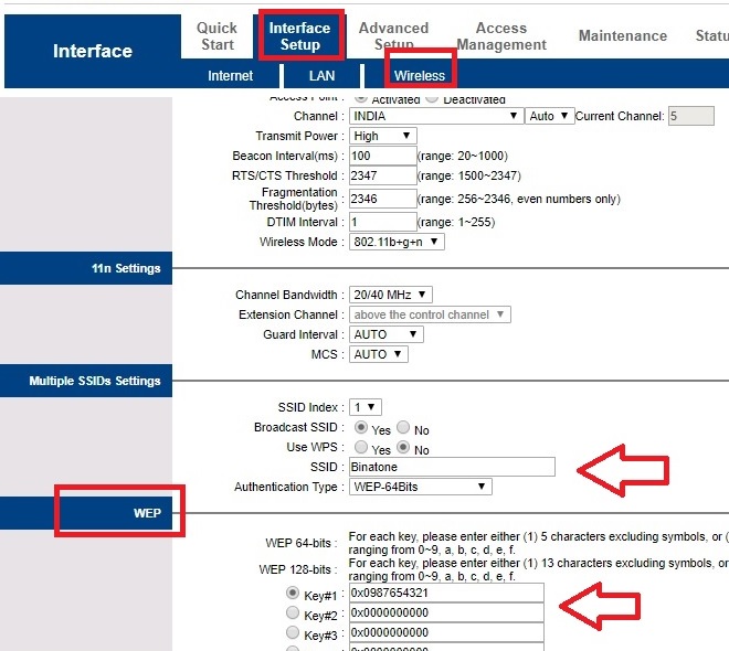 - WEP- type Password in Key#1 box.