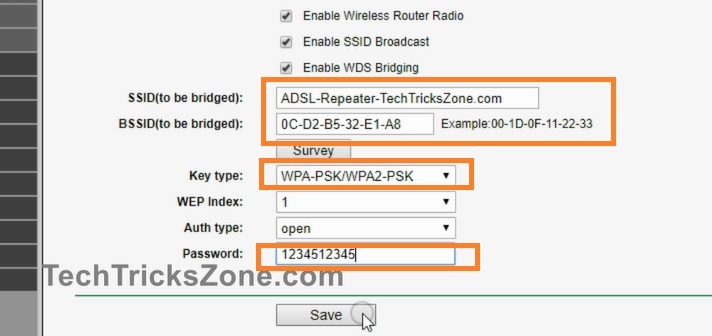 SSID- type your Repeater SSID (this Wi-Fi name will use to connect from Mobile and laptop as well as main Wi-Fi router to get internet wirelessly)
