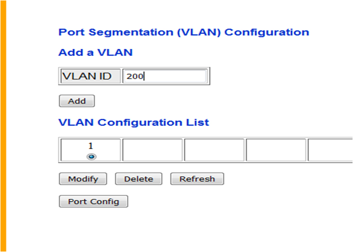 VLAN Configuration List: If VLAN successfully added you can see in VLAN configuration list given below. To modify and delete select the VLAN number and use button given below.