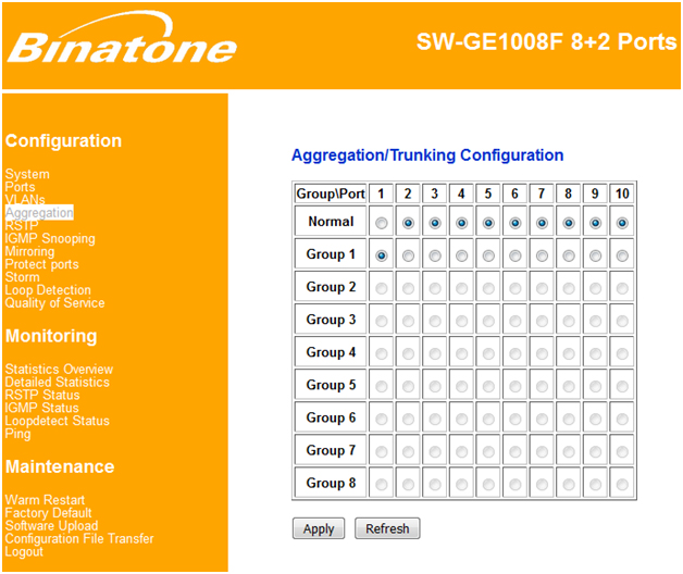 Step: 1 Binatone SW-GE1008F VLAN Switch Configuration Steps