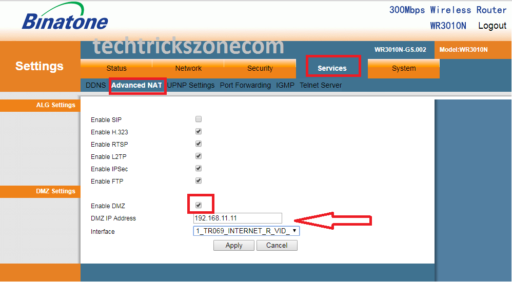 Binatone WR3010 N Wireless Router DMZ configuration