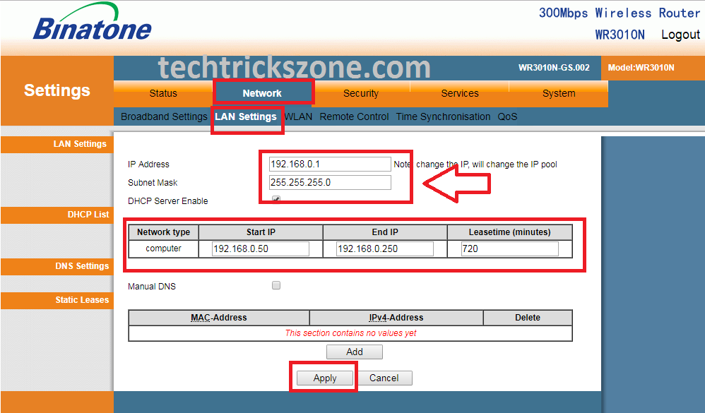 Binatone WR3010N 300Mbps Wireless Router LAN Configuration.