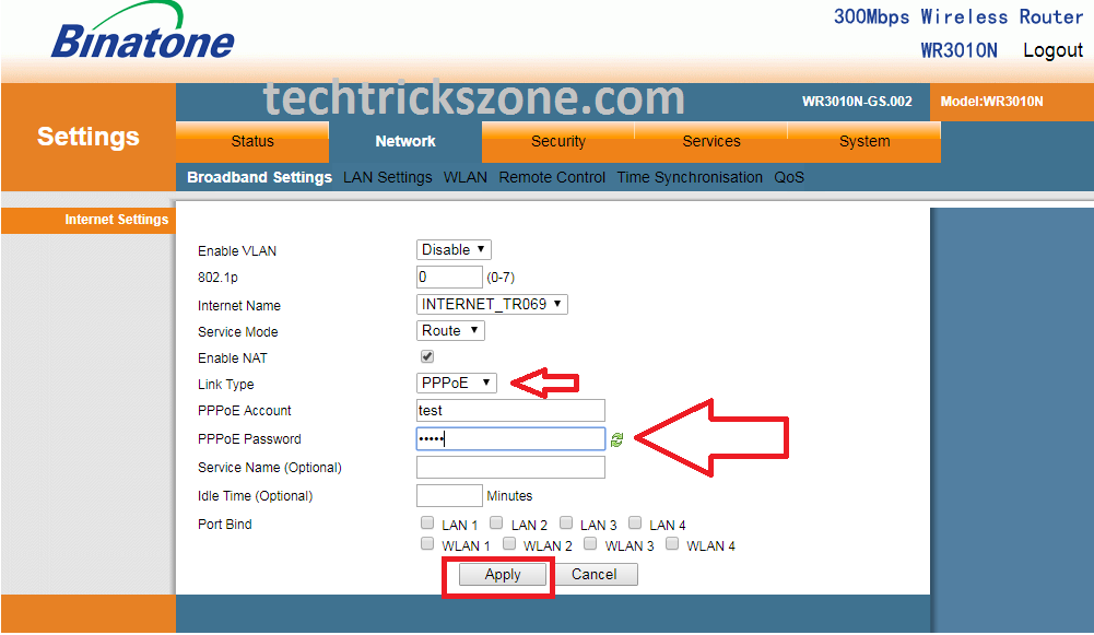 Binatone WR3010 N Wireless Router Configuration in PPPoE mode
