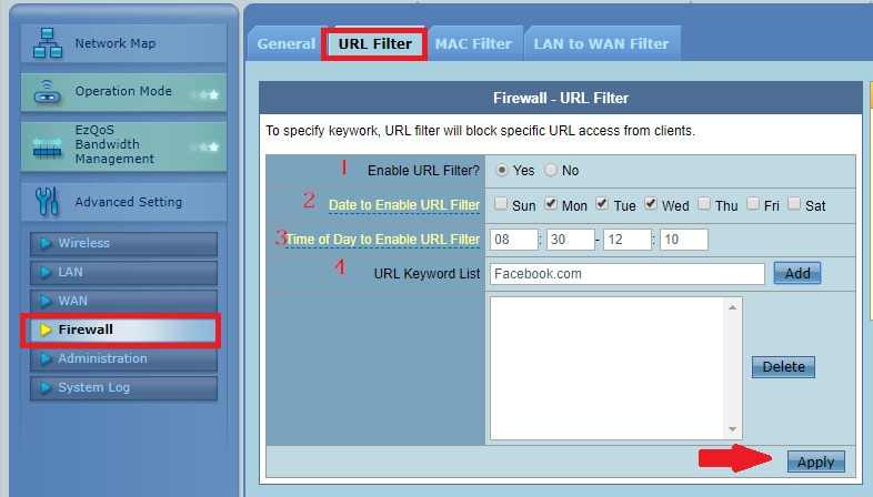 This is the simple steps to control internet access and time schedule for your home and office WiFi router. Enabling URL filter option will protect your kids from visiting the harmful websites and only allow useful content and apps in your wifi network.