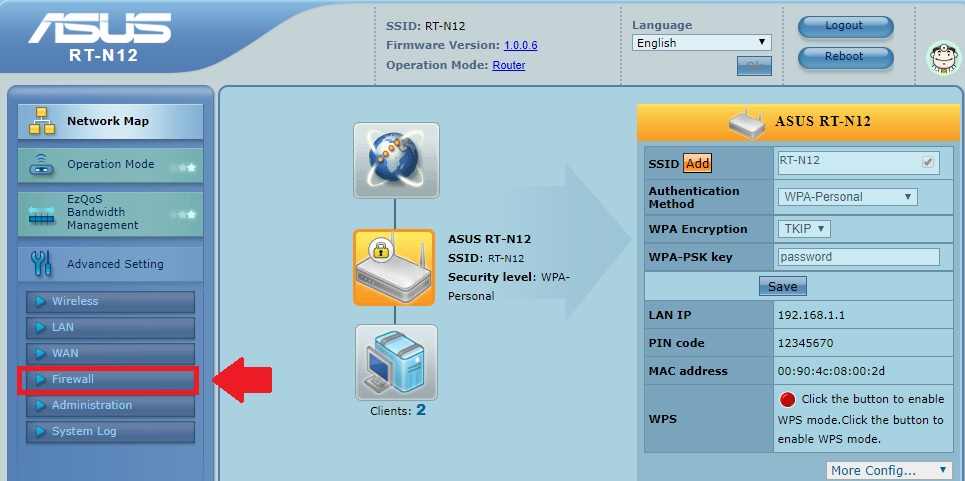 Asus default username and password: admin/admin