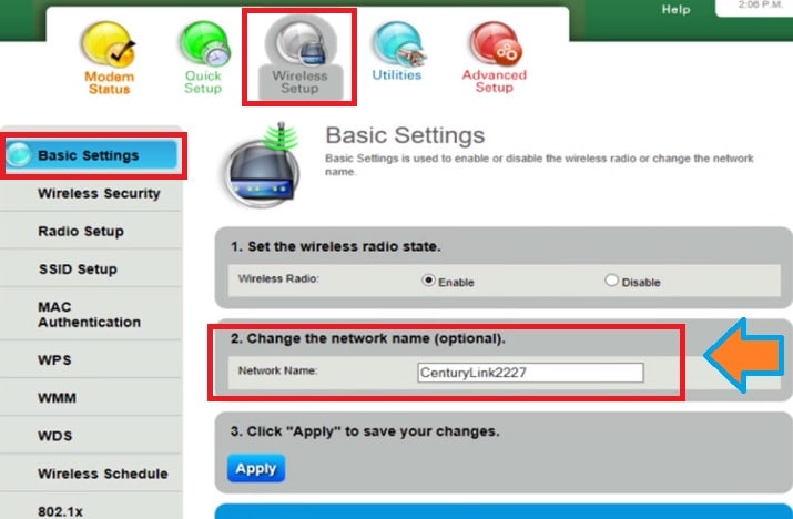 2: Change the Network Name: Centurylink2227 ( delete this name and create a new name for your Wifi network.