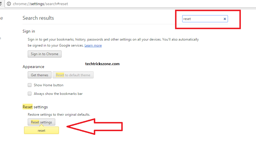 Type Reset on the Search box and click “Reset Setting” Button in the bottom.