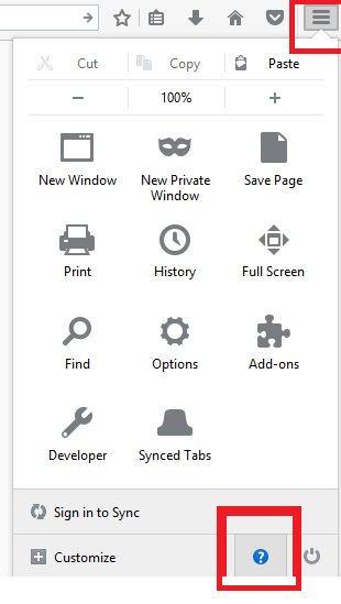 Open Mozilla Firefox and Click Three horizontally Line (_) from Right Side Top and click Help (?) option From menu bottom