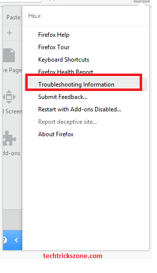 In Next Menu Click on “Firefox troubleshooting information” Option from the Menu list.