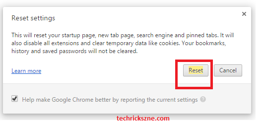 Click Reset To confirm Browser Resetting Process Finish