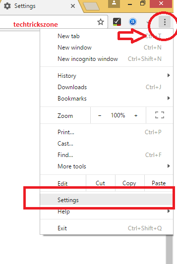 Open Google Chrome and Click Vertical Dot (:) from Right Side Top and click setting option