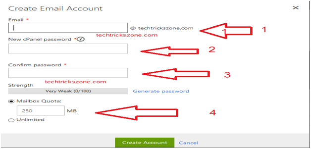 1. Email – user your email id name you want to create i.e – support@domainname.com