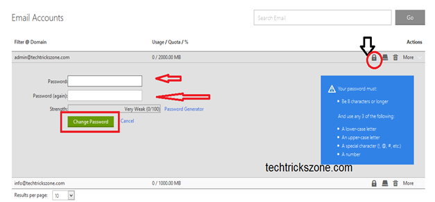 2. Change Password: click Lock button from the email id option showing in “ Email Accounts “