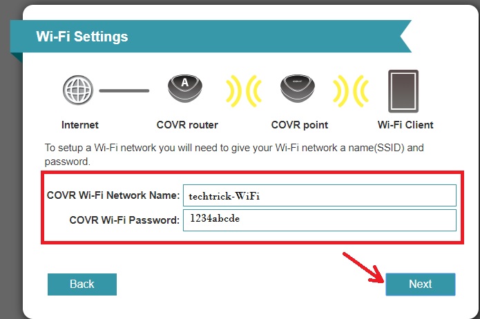 COVR Wi-Fi Password: type COVR wifi password which will use to connect from mobile and laptop device.
