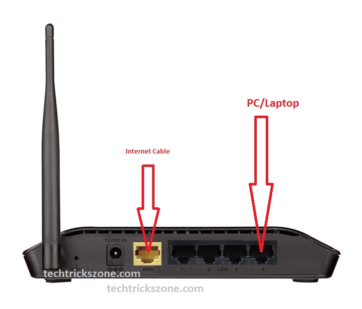 Connect your Internet cable to WAN port in DIR615/ DIR600. Connect Lan Cable to Lan port from 4Lan Port and connect to Laptop for D-Link DIR600 first time configuration for your home. Follow the Image Given Below.