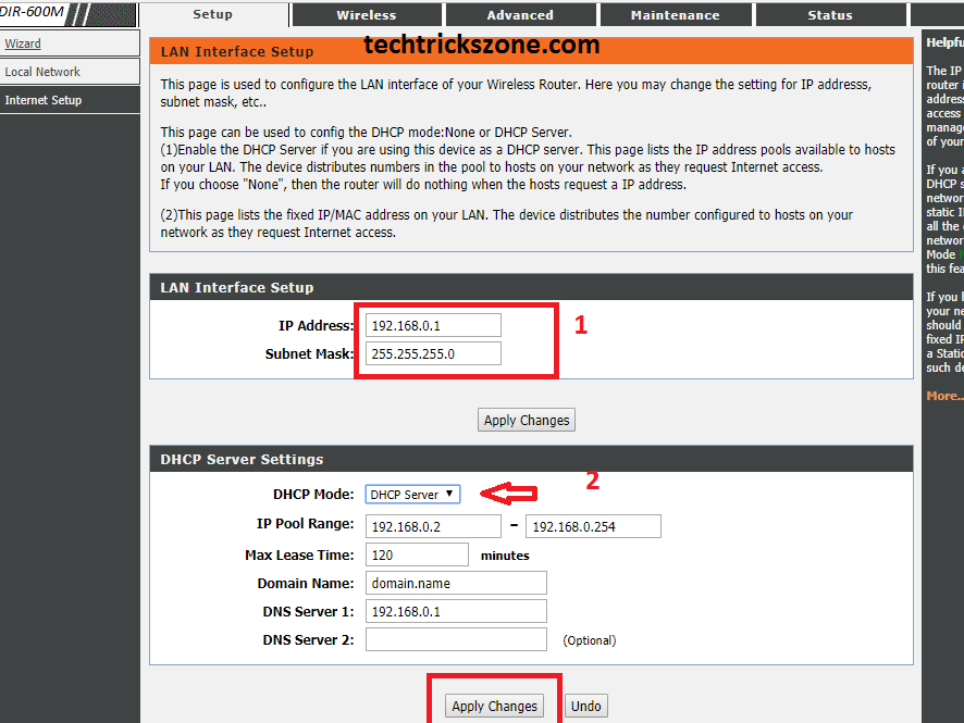 D-Link DIR600M Wireless Router LAN and DHCP Server Configuration.