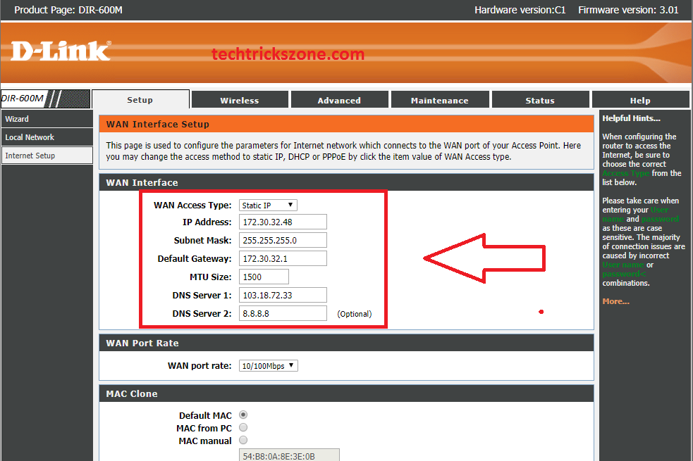 D-Link DIR615 300Mbps Wireless Router WAN configuration