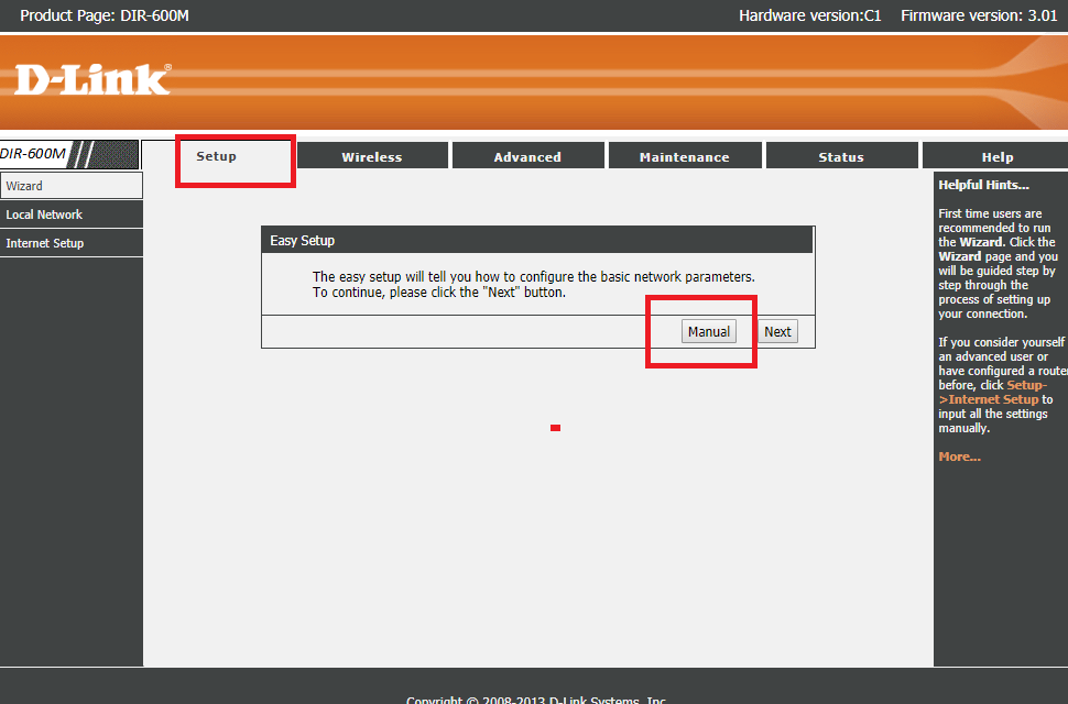 When you will log in your router first time you will directly go to the setup page. In the setup page, you will get the configuration method manual and Wizard. Click on Manuals as show given picture.