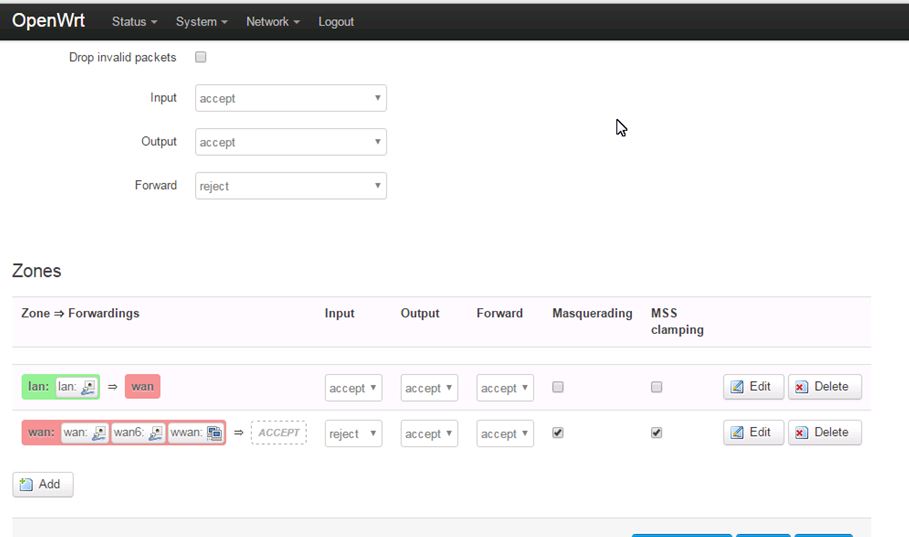 - Wan WWan — Input = Reject | Output = Accept | Forward = Accept