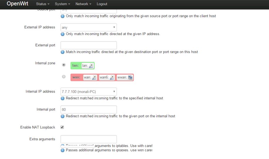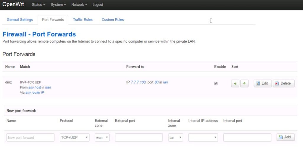 Port Forwarding For DMZ use in OpenWrt
