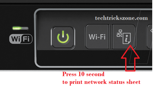 Print the network status sheet with press the LAN button for up to 10 seconds. See how to print the network status sheet on Epson ink tank Wi-Fi printer.