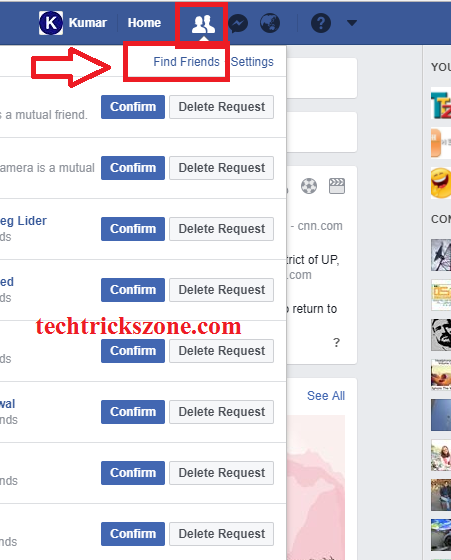 Click the Find Friends Option in Notification Window. If you want to accept and Reject your Received Friend request then you can Click Confirm for Accept Request and Delete Request for Reject Friends Request.