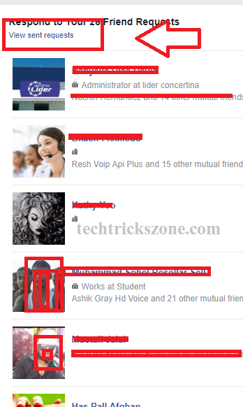 After click View Sent Friend Request you will get a list of sent friends requested by you. Just find the name of those friends who you want to check he/she accept and reject your request. If you he/she name still in the list it means they still not accept your request and not rejected your request. This list contains all the requests you have sent to anyone and just Check Facebook Request Accepted or Rejected by friends you looking in the list available or not.