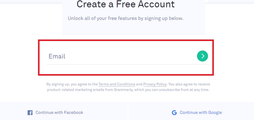 Step5: Set Email Address and Password for Grammarly free account Sign UP.