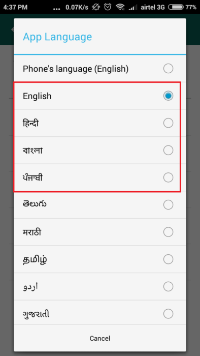 3:- How to Change WhatsApp Language to Hindi or any Language.