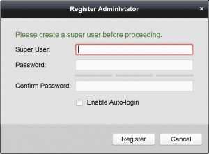 Superuser: type username (create Admin user to manage iVMS software and CCTV monitoring)