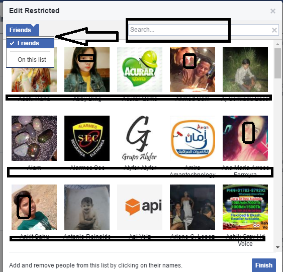 Search friend name to add in the restrict list and click Finish from the bottom.