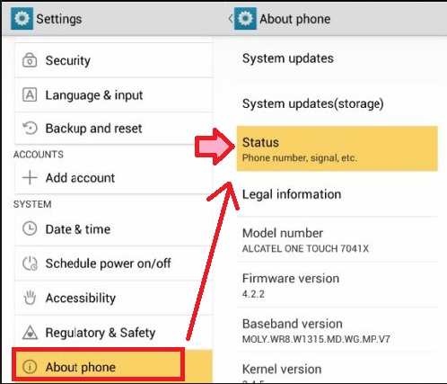 Inside status, you will find Mac address, and other phone information such as mobile signal, IP address,