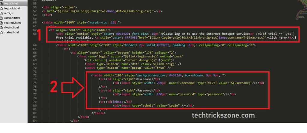 Note:- in this tutorial for Mikrotik hotspot page design I have give only basic changes which can be done by everyone. But if you know CSS and HTML then you can do more changes. The motive of doing basic changes on the page to provide a medium to customize the Mikrotik hotspot page to a person who doesn’t know work on CSS and HTML.