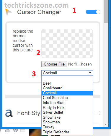- Replace the normal mouse cursor with this picture: if you want to use any image for mouse cursor then use choose File button to upload the image.